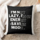 Dit stijlvolle en humoristische kussen is de perfecte aanvulling op uw leefruimte. Met het geestige citaat 'Ik ben niet lui, ik ben op energiebesparende modus', voegt het een vleugje humor toe aan uw interieur. Gemaakt met hoogwaardige materialen, dit kussen is zowel comfortabel als duurzaam, waardoor het een ideaal geschenk is voor vrienden, familie of zelfs jezelf. Perfect voor luie dagen op de bank of als een decoratief stuk in elke kamer.