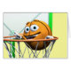 Een geweldig cadeau voor een basketbalfan. Een oranje cartoon basketbal valt door een basketbalhoepel met een grote grijns.