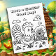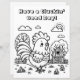 Schattigee volwassen kleurplaat voor kinderen, tieners of volwassenen, eenvoudige dikke lijnen om het kleuren gemakkelijker te maken. Een schattige haan op een boerderij en een grappig kippenwoordje, "Have a cluckin' good day".