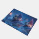 Een charmant en fantasierijk afbeelding van een groep grillige kabouters, gekleed in klassieke puntige petten, rijdend op de rug van haaien. De haaien lijken te zijn gemaakt van een sprankelende, sneeuw-achtige substantie, toe te voegen aan het magische gevoel. De scène speelt zich af in een donkere, koude en mysterieuze blauwkleurige omgeving met gloeiende lichten op de achtergrond.