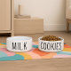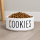 Deze minimalistische hondenkom is voorzien van het woord koekjes in vetgedrukte zwarte tekst op een schone witte keramische basis. Ontworpen voor moderne hondenliefhebbers, combineert het stijl en humor in een slank, functioneel stuk. Ideaal voor honden met een foodie-instelling en huisdierouders die houden van trendy, ingetogen accessoires. Een bijpassende waterbak met "melk" -tekst is afzonderlijk verkrijgbaar om de look te voltooien.