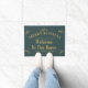 Feestelijke kerstdeurmat met gouden maretak op een diep blauwgroen groen. Voeg je eigen grappige slogan en familienaam toe, ik zei Merry Kissmas!
