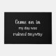 Welkom uw gasten met deze grillige zwart-witte deurmat met de woorden "kom op in mijn dag was toch geruïneerd" in de moderne typografie en laat ze beslissen of ze willen binnengaan!