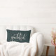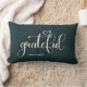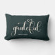 A modern simple lumbar pillow in dark green with the word "Grateful", personalize with your family name. This pillow is the perfect addition to your home decorations, or makes a beautiful gift.