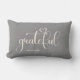 A modern simple lumbar pillow in gray with the word "Grateful", personalize with your family name. This pillow is the perfect addition to your home decorations, or makes a beautiful gift.
