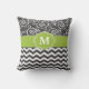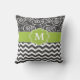 Show van je stijl op een leuke manier met deze koolgrijze en kalkgroene scroll en chevron monogram kussen.