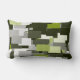 Grijze en groene camouflage rechthoeken bedekken deze kussen voor de jager, soldaat, overlevende of camopatroonliefhebber.