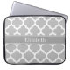 Gray White Moroccan #5 Dark Grey Name Monogram Laptop Sleeve