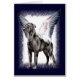 Grand Ange Dane en Noir Non recadré avec des ailes pourpres, bleues et noires.