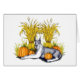 OEuvre d'automne et d'Halloween des Danois-R-Us avec un grand Danois avec une toile de fond de maïs et de citrouille à l'avant.