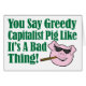 Spuitt-shirts, bumperstickers, geschenken en accessoires voor de kapitalistische uitstapjes. Je zegt Greedy Capitalist Pig alsof het een slechte zaak is! Waarom knuffelen ze de ruimte op een wieg in de schuilplaats, terwijl je met hard werk en doorzettingsvermogen geld kunt hogen!