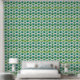 Vet kleurrijke groene boogvis schaal geometrisch patroon verschillende tinten groen, crème en turqyoise blauwgroen blauw. Kalmerende natuur geïnspireerd kleurenpalet ideaal voor biophilic design. Retro maar nog steeds modern dit gedurfde patroon is perfect voor accentmuren. Peel en stick behang kunt u uw kleine ruimte interieur te upgraden en uw huur te personaliseren met uw unieke design esthetiek. Geen saaie witte dozen meer!