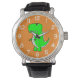 Green Dinosaur Drawing Horloge