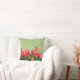 Rode tulpen bloeien tegen de achtergrond van groene gingham cheques.