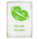 Grafisch ontwerp van groene lippen geblazen op kreukvrij papier met de boodschap "Kiss Me I'm Irish" voor de kerstkaart van St Patrick. Leeg binnen.