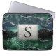 Green Silver Glitter Marble Geode Agate Monogram Laptop Sleeve