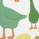 Modern goose wallpaper with lots of green and yellow geese in different poses.