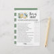 Koop deze bewerkbare kaart en geniet van Baby shower van hoge kwaliteit dat u over of onder de game kunt raden voor uw evenement! Baby shower, gender onthullen activiteiten! Sage Green Brewery Unisex design.