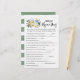 Koop deze bewerkbare kaart en geniet voor uw evenement van de hoogwaardige Baby shower Nursery Rhyme Quiz Game! Baby shower, gender onthullen activiteiten! Sage Green Brewery Unisex design. ANTWOORDEN: 1 - GARDEN, 2 - CURDS WHEY, 3 - MANNEN, 4 - PICKLED PEPPERS, 5 - CRY, 6 - KEEP, 7 - BAKER'S, 8 - CHRISTMAS, 9 - TIGER, 10 - WOOL, 11 - KNOCK, 12 - CUPBOARD, 13 - CLOCK, 4 - MUFFIN MAN, 15 - SCHAPEN
