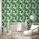 Groen groen en wit tropisch bladpatroon mok. Groen digitaal geschilderde tropische of strandbladeren herhaald als een patroon. De kleuren zijn groen en wit in deze natuur geïnspireerde groene stijl van patroonontwerp. Helder en kleurrijk, deze tropische bladeren zijn erg vrolijk. Overlappende tropische bladeren met een subtiel beschilderd tegel-patroon op de achtergrond. Zoals gezegd is dit een digitaal schilderij van deze bladeren.