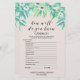 Dit groenere 'hoe goed ken je het bruidspel' is perfect voor een vrijgezellenfeest met een roestvrij blad of een bos thema. Aan de voorkant van de gamekaart staat "hoe goed ken je de bruid" en aan de achterkant van de kaart staat "wat er in je tas zit". Het ontwerp is voorzien van een prachtige groene boeket van bladeren en takken met witte anemonbloemen en een elegant lettertype voor calligrafie op een roombeige achtergrond. Pas de voorkant van de kaart aan met de bruidsnaam en de datum van de trouwdouche. Ontworpen met zorg door Miriam op Fresh & Yummy Paperie. Ga voor het coördineren van objecten naar mijn Zazzle winkel: