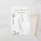 Greenery Foliage raadt het Vrijgezellenfeest van de Dress op een Kraft effect achtergrond. De tekst "denk de jurk"wordt geschreven in een doopvont van het Manuscript met aangesloten harten. Je tekent de stijl van de trouwjurk, de dichtstbijzijnde versie van de eigenlijke jurk van de bruid.
