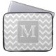 Grijs en Witte Zigzags met aangepast monogram. Laptop Sleeve