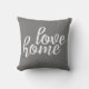 Het perfecte home decor stuk dit is een grijs / grijs gooi kussen met de tekst love home in een script lettertype. Perfect voor huislichamen.