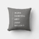 Een minimalistisch kussen in een mooie frisse grijze kleur met witte tekst, met maximaal 5 familienamen met een lijn en een hartgrens aan de linkerkant. Als u minder namen wilt hebben, kunt u deze bewerken via de ontwerptool en eventuele extra namen verwijderen. Dit ontwerp kan worden aangepast met de namen van uw familieleden.