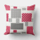 Grijsrode stip patchwork op witte achtergrond buitenkussen