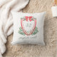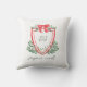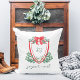 Dit chique vakantiekussen in stijl heeft een kleurrijk, grillig kerstontwerp. Een felrode kam met je monogram en een strik is omgeven door waterverf groene botanische bladeren, en het handgeschreven script zegt "joyeux noël" of "Vrolijk kerstfeest" in het Frans.