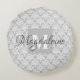 Ce beau coussin d'accent présente un motif damassé blanc classique sur un arrière - plan gris. Le design est personnalisé avec une lettre initiale monogramme ainsi qu'un nom personnalisable. Parfait pour décorer toutes les chambres avec un style classique mais élégant. Grande maison cadeau de chauffage ou parfait pour décorer un dortoir ou un nouvel appartement.