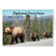Cette photo montre une mama grizzli menant ses deux adorables petits grizzlis sur l'autoroute dans le parc national de Yellowstone, avec les montagnes et les pins dans l'arrière - plan.