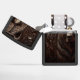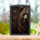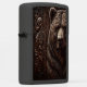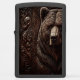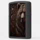 Een gedetailleerd lederen snijwerk van het gezicht van een grizzly beer met ingewikkelde bloemige design die het onderwerp omlijsten.
