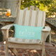 Voeg een zomergevoel toe aan uw buitenleefruimte met dit gestreepte buitenkussen in een groen en aqua gestreepte patroon. Witte aangepaste tekst lezen ontspannen en blijven een tijdje, versiert de voorkant, van het kussen. Personaliseer de tekst om te lezen wat je wilt.