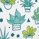 Blauw groen patroon met groeiend succulenten en cactussen in potten. | © en ® Bigstock® - Alle rechten voorbehouden.