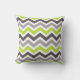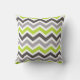 Een fel groen en grijs chevron patterned kussen.