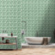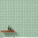 Deze peal-and-stick vinyl behang is voorzien van een gebladerte ontwerp genaamd False Indigo door de maker. Het is echter slechts een product van de verbeelding van de artiesten en lijkt niet op een vals indigo-plant. De kleuren zijn groen en crème. Gebruik het in elke kamer. Oregon Tegel maker Fay Jones Day