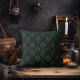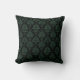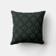 Groen en zwart Damask Sierkussen. © Dark Heart Desires. Een donker academisch of gotisch werpkussen met een groen en zwart damast patroon erop.