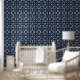 Groen Wit Deep Navy Abstract Bloem Behang