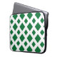 Een vet, geometrisch patroon van grote en kleine groene diamanten op een witte achtergrond. Het wit vormt een rooster dat de diamantvormen scheidt. Digitaal gemaakt afbeelding. Copyright ©2013 Claire E. Skinner, Alle rechten voorbehouden.