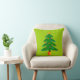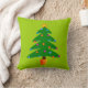 Illustratie van een heldere groene kerstboom. Een gouden ster zit boven en de boom is gekleed met roze, blauwe en oranje versieringen.
