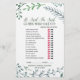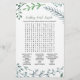 Dit groene kreupele spel "zei ze" is perfect voor een vrijgezellenfeest in de openlucht. Aan de voorkant van de spelkaart staat "hij zei dat ze zei", wat een leuke quiz is over de bruid en bruidegom. Op de achterkant van de kaart staat een woord met huwelijkswoorden en zinnen. Het ontwerp is voorzien van een prachtig en grillig lijst van waterverf bladeren, planten en groen. Pas de spelkaart aan met de bruidsnaam en de datum van het vrijgezellenfeest.