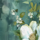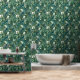 Groene Witte Bloem Floral Behang