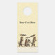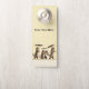 Deze papieren deurhanger is geel met een groep bruine en witte gestreepte katten en kittens die paraplu's vasthouden die in de sneeuw lopen. Pas jouw tekst op de voor- en achterkant aan met de sjabloon.