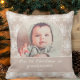 "Onze eerste Kerstmis als grootouders": een bruine decorator gooit kussen met witte sneeuwvlokken. Personaliseer je met het jaar en een foto van hun kleinkind.