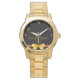 Elegant, klassiek, glamoureus en vrouwelijk. Een faux goudkleurige boog en lint, een beetje lust en luxe voor een verjaardagscadeau of een keepasje voor je grootmoeder. Zwarte achtergrond. Met de tekst: Beste oma ooit. Golden kloknummers van 9 tot 3.