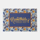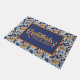 Een schattige blauwe bloemige en Oranje welkomstdeurmat voor grootouders