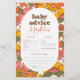 Een retro baby Hallo Baby advies & voorspellingskaart die past bij onze " | Groovy Retro Flowers Boho Baby shower" uitnodigingen. Uitzicht het collectie dat op deze pagina is gekoppeld voor overeenkomende objecten. Dit ontwerp heeft een groovy bloemenpatroon achtergrond met een witte ovale overlay in het midden. Het warme kleurenpalet van bruine, gele, oranje, crème en groene tinten geeft een echte 70s touch. Het bloemige madelpatroon is een handgetekend bloemmoerpatroon in cartoon-stijl met gedurfde kleuren en sterke contouren die passen bij de hippiestijl uit de jaren zeventig. In het ovale lijst is er ruimte voor gasten om hun geboortevoorspellingen, gelijkenissen voorspellingen en advies voor de nieuwe ouders te schrijven.