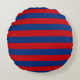 Grote horizontale strepen (rood en blauw) rond kussen